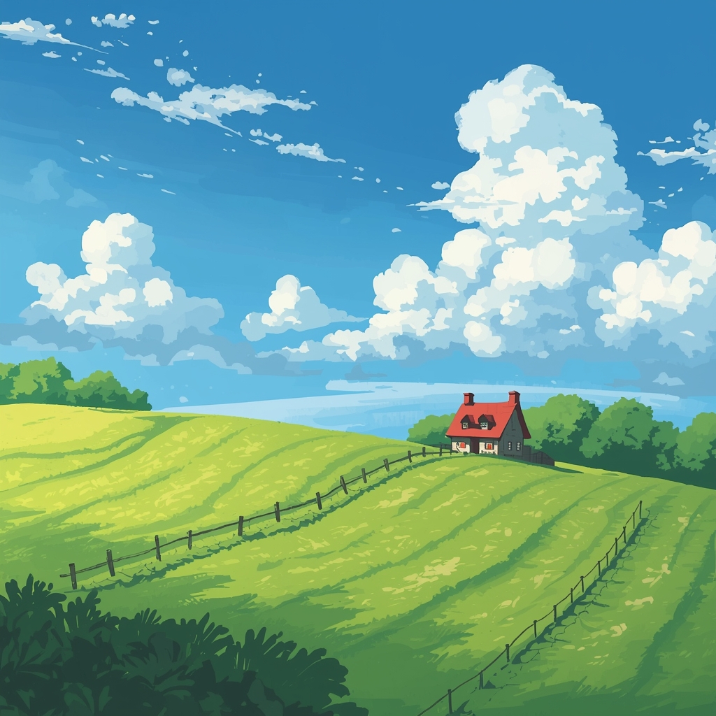 hand-painted style, pastel colors, dreamy and calm atmosphere